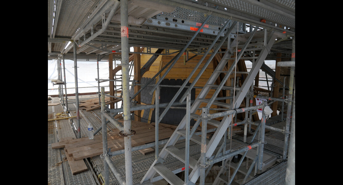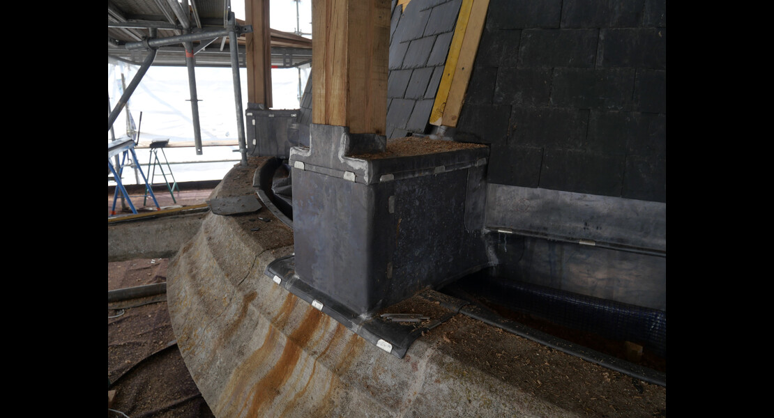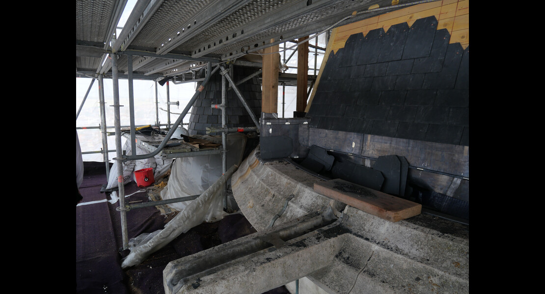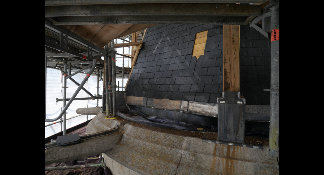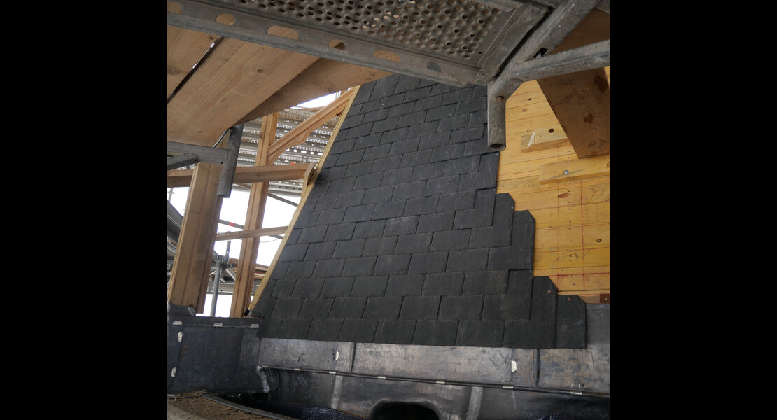 Pose des ardoises du clocher