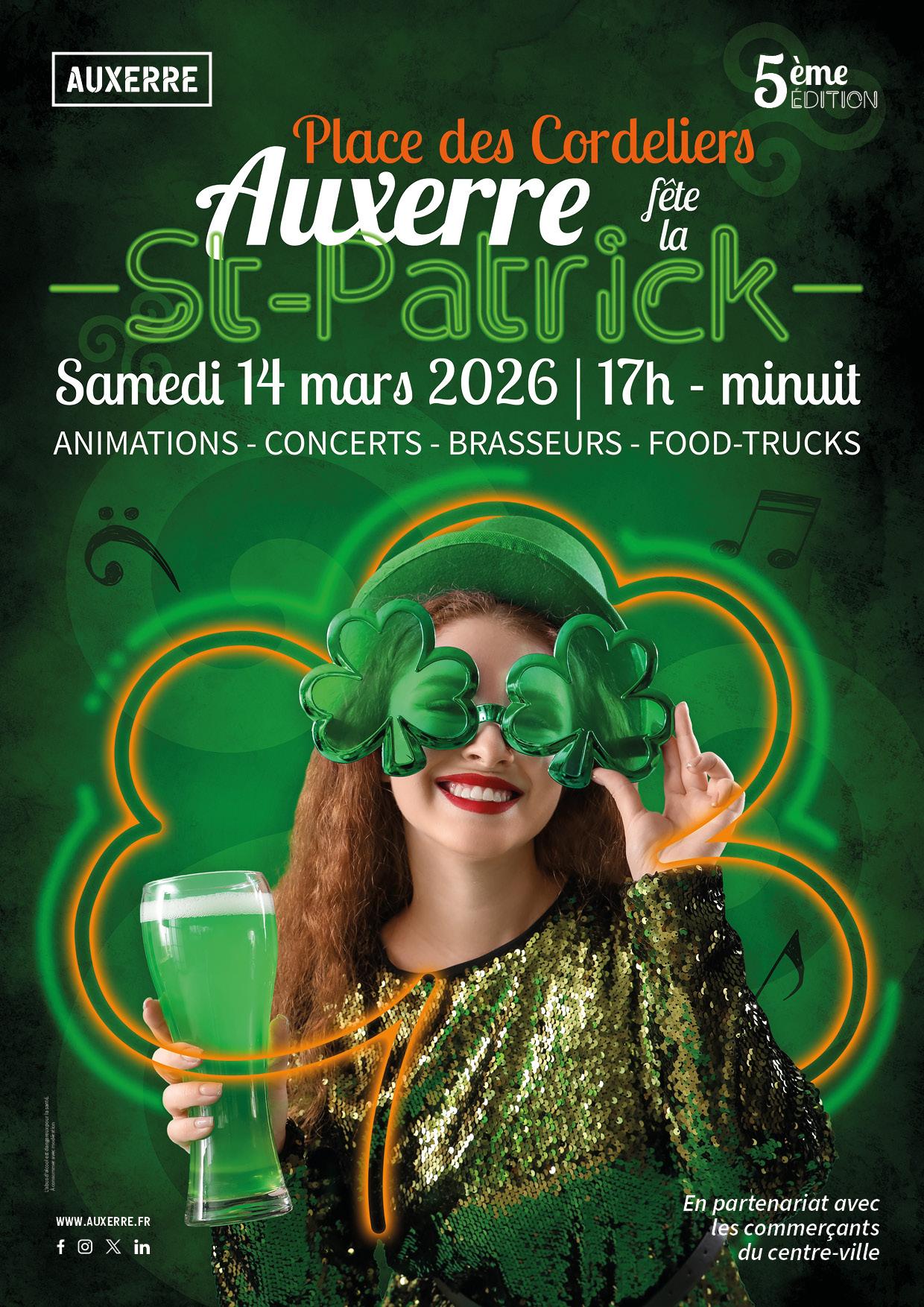 Concerts, brasseurs, foodtrucks.. Auxerre célèbre la Saint Patrick et transforme la Place des Cordeliers en village festif et convivial.