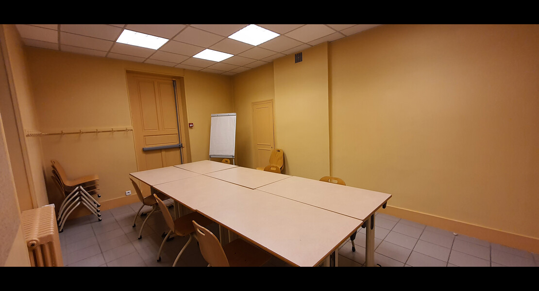 Ajouter la carte***** Salle Jean Carré - Passage Soufflot Adresse : Passage Soufflot, 89000 Auxerre Superficie de la salle principale : 21 m2 Capacité en nombre de personnes : 14 uniquement en U Organisation de réunion : oui Organisation de spectacle : non Organisation de réception - Événements familiaux : non Local cuisine : non Tables – chaises : 06 tables + 14 chaises Vaisselle : non Parking dédié : non Possibilité de stationnement à proximité : parking de l’Arquebuse (gratuit) Caution oui (chèque) Tarifs (Coût horaire TTC entre 8h et 23 h) : Personnes morales de droit public ou privé, particuliers Auxerroises : 10,00 € Non auxerroise : 11,50 € Association (Loi 1901) Auxerroises : 5,50 € Non auxerroise : 7,00 € Contact : Mail : location [point] moyensauxerre [point] com (location[dot]moyens[at]auxerre[dot]com) Téléphone : 03 86 72 43 38 Salle Jean Carré - Passage Soufflot Cet album contient 2 éléments. Découvrir l'album